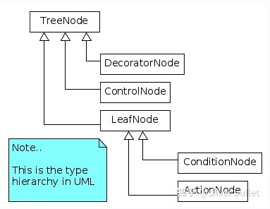ControlNode:控制节点,有至少1个子节点,负责控制执行流程;可以细分成非常多的种类。DecoratorNode:装饰节点,有且仅有1个子节点,负责重复执行子节点,或更改子节点的返回结果。ConditionNode:条件节点,没有子节点,需要由开发者实现,不可以返回RUNNING,必须atomic and synchronous,负责任务执行的判断条件,不应该改变系统的状态。ActionNode:动作节点,没有子节点,需要由开发者实现,负责执行具体任务。有同步和异步之分。