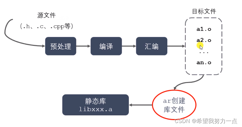 gcc -c test.cpp生成.o目标文件ar rcs libxxx.a xxx.o xxx.o打包文件制作静态库libxxx.a(windows libxxx.lib)