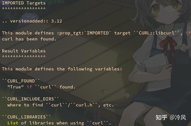 FindCURL.cmake的注释,可以看到IMPORTED Targets章节是在介绍现代的用法,而Result Variables章节是在介绍古代的用法,我们尽量用现代的那种就行。