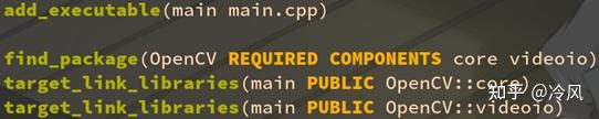 查找名为 OpenCV 的包,找不到就报错,且必须具有 OpenCV::core 和 OpenCV::videoio 这两个组件,如果没有这两个组件也会报错。