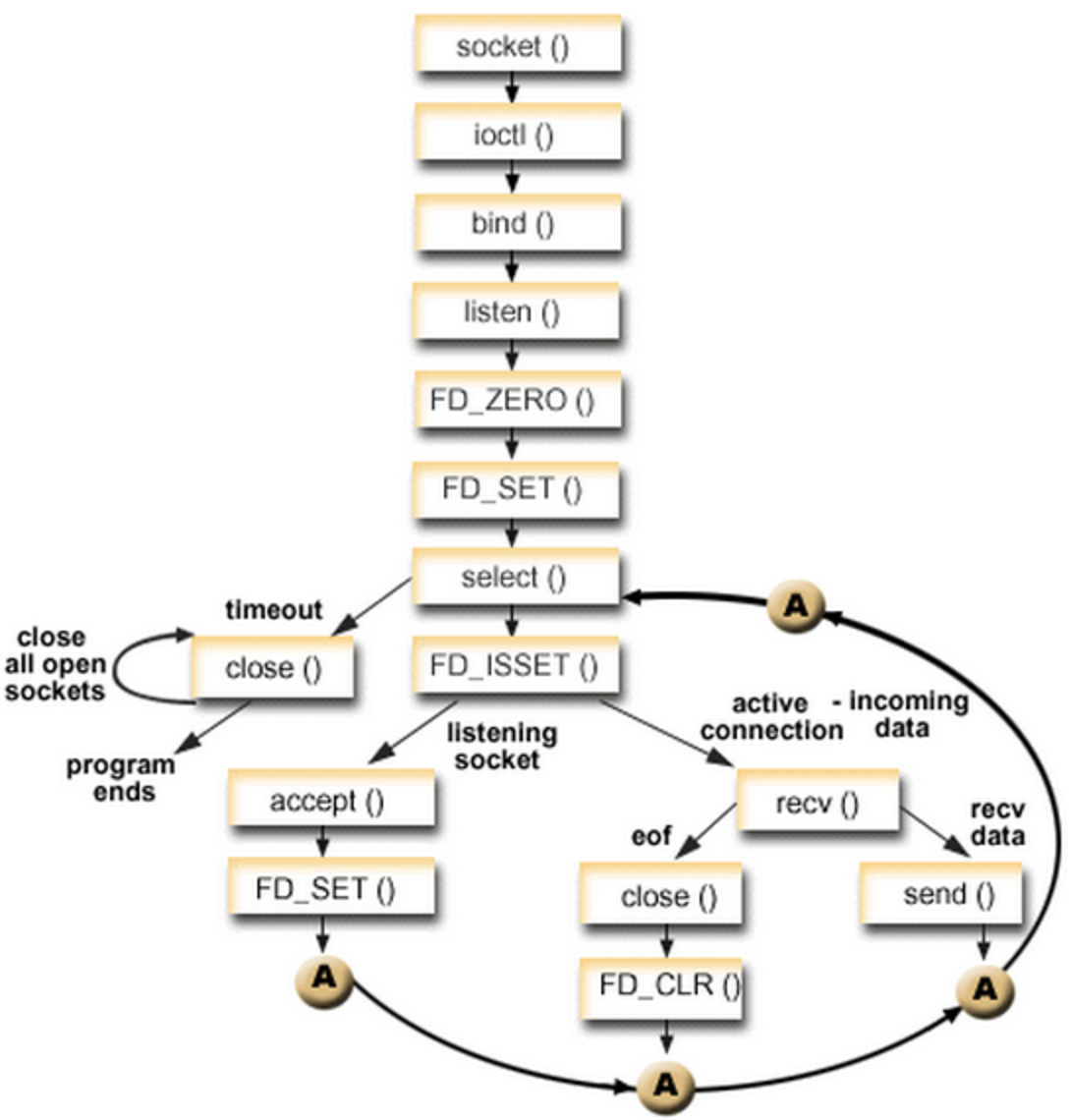 int select(int maxfdp1, fd_set *readset, fd_set *writeset, fd_set *exceptset, const struct timeval *timeout);