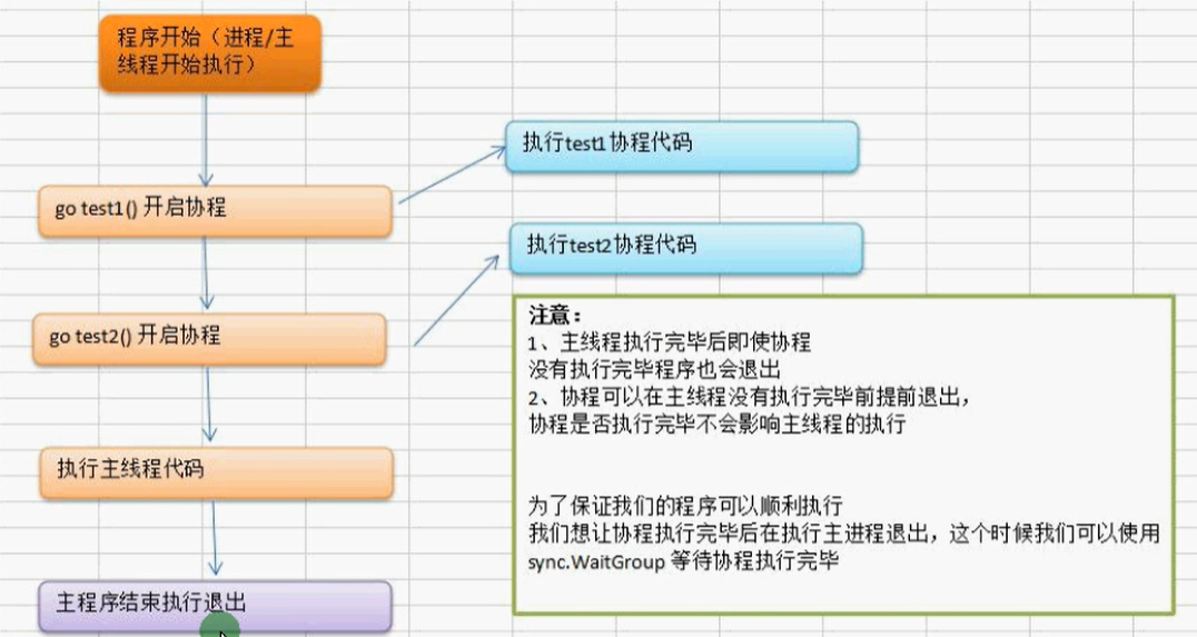 因为我们协程会在主线程退出后就终止,所以我们还需要使用到 sync.WaitGroup 来控制主线程的终止。