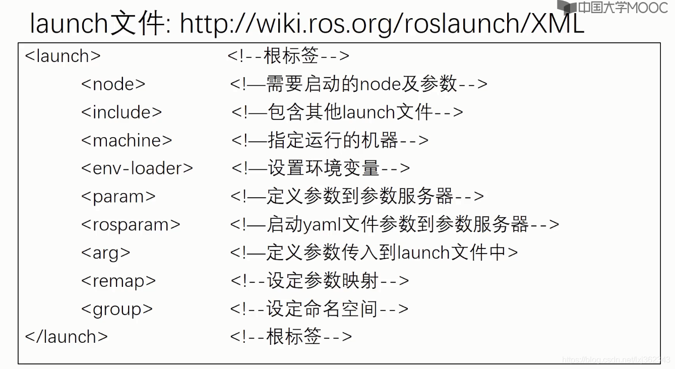 - launch文件同样也遵循着xml格式规范,是一种标签文本,它的格式包括以下标签: