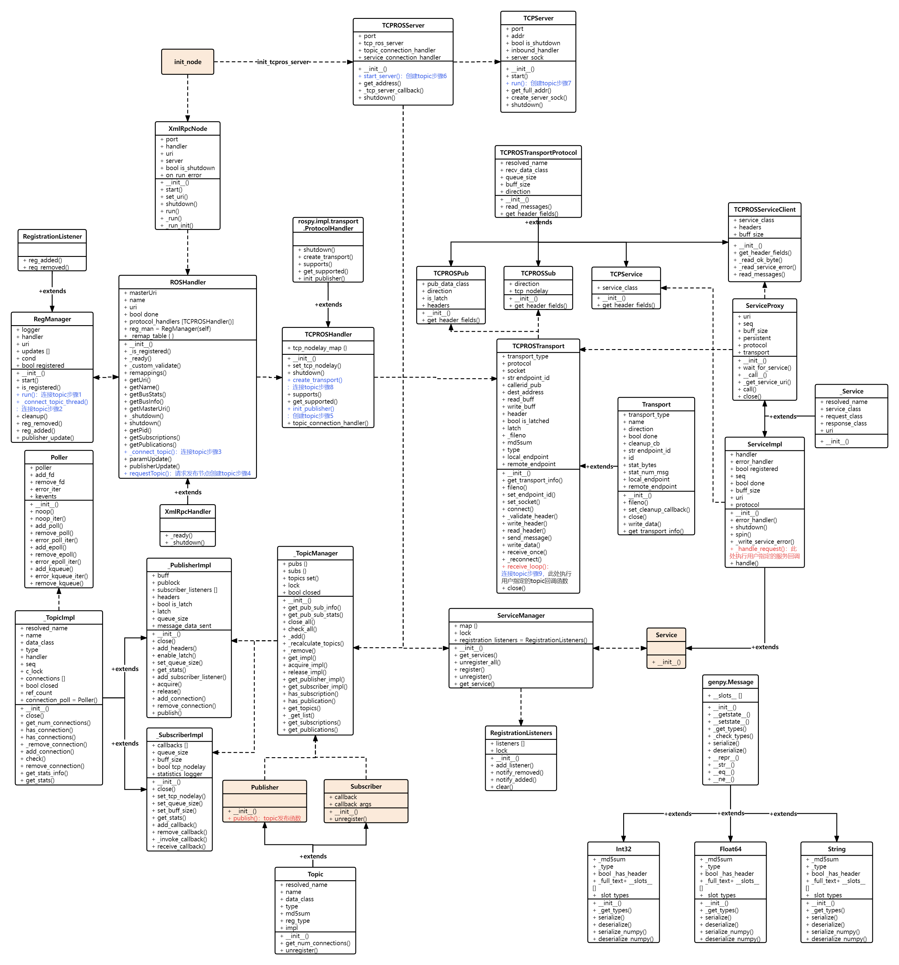 python的SimpleXMLRPCServer启动了http服务器(默认端口号11311 ),以接受PubNode&SubNode的服务注册和参数服务处理, 具体的master所有提供的功能实现在rosmaster.master_api.ROSMasterHandler。