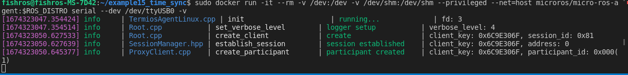 sudo docker run -it --rm -v /dev:/dev -v /dev/shm:/dev/shm --privileged --net=host microros/micro-ros-agent:$ROS_DISTRO serial --dev /dev/ttyUSB0 -v