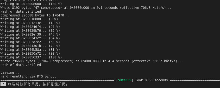 连接开发板,编译下载,如果遇到端口被占用,多半是你的microros_agent没有关闭,Ctrl+C打断运行再次尝试。