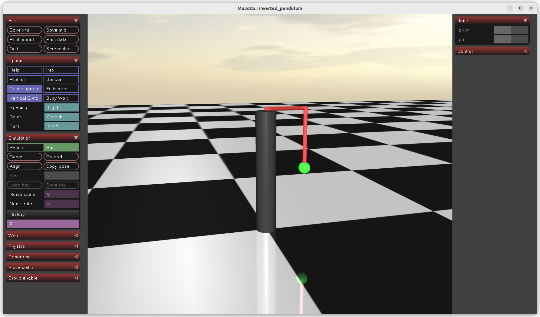 <joint type="hinge" name="pivot" pos="0 0 0" axis="0 0 1" damping="0.001"